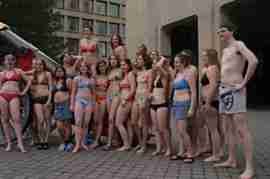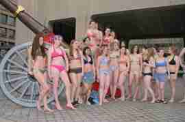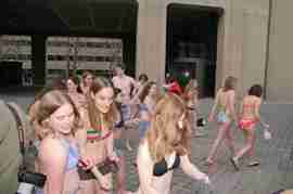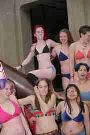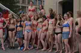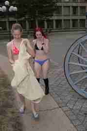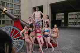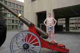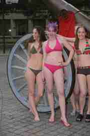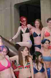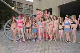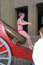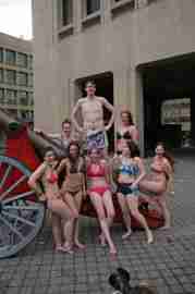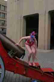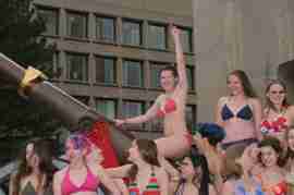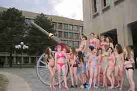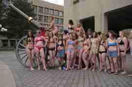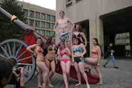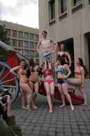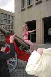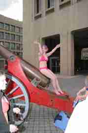 The Howe & Ser Moving Company appropriated the Cannon pictured here from a student house at CalTech on the 20th anniversary of it being previously appropriated. It showed up at MIT the morning of April 6. Someone decided that a photoshoot of students in bikinis with their new toy was appropriate, and I found it hard to not show up for that with my camera.